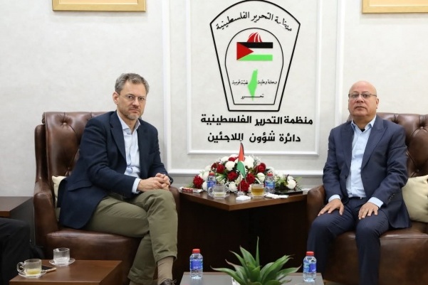 أبو هولي يبحث حماية الأونروا وتحسين أوضاع المخيمات مع المعهد الأوروبي للسلام