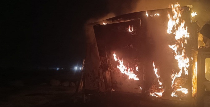 مستوطنون يضرمون النار في مساكن متنقلة للمواطنين في سوسيا جنوب الخليل