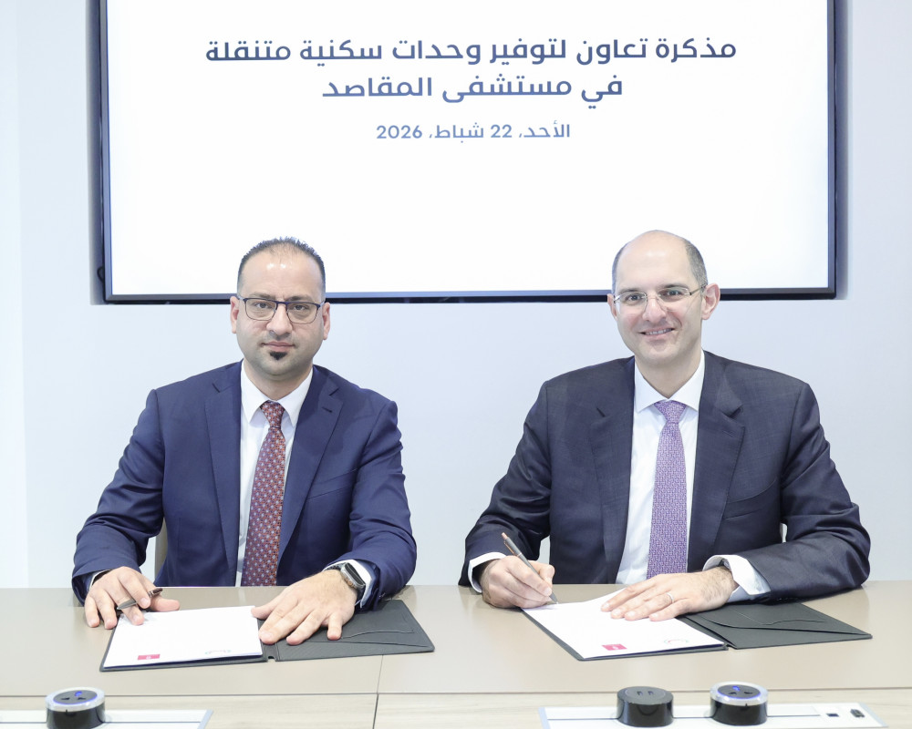 بنك فلسطين يوقّع اتفاقية شراكة مع مستشفى جمعية المقاصد الخيرية الإسلامية في القدس لتوفير وحدات سكنية متنقلة لمرافقي المر