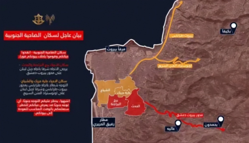 الاحتلال يوجّه إنذارًا عاجلًا لسكان ضاحية بيروت الجنوبية بالإخلاء