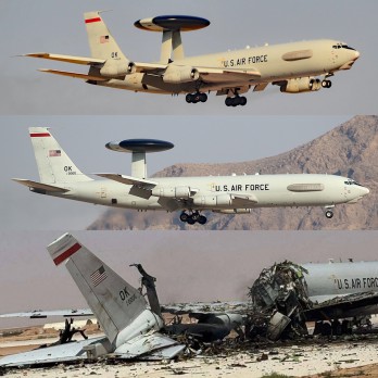 صور متداولة لطائرة “أواكس” الأمريكية التي دمرتها الصواريخ الإيرانية في قاعدة عسكرية بالسعودية..