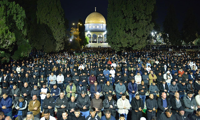 أدى نحو 100 ألف مصلٍ مساء الجمعة، صلاتي العشاء والتراويح في رحاب المسجد الأقصى المبارك بمدينة القدس المحتلة في اليوم الثالث من شهر رمضان.
