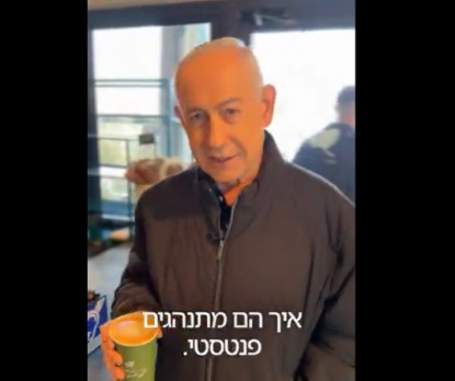 وظهر نتنياهو في الفيديو الذي نشر حسابه الرسمي على منصة إكس، وهو يحمل كوبا من القهوة في مقهى قرب القدس. وقال ساخرا “أحب القهوة حتى الموت”.