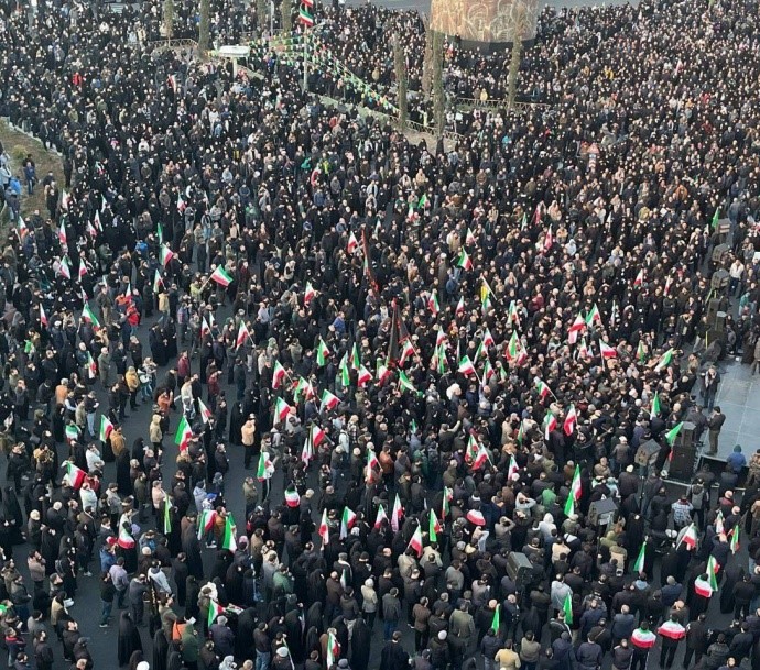 الرئيس الإيراني ولاريجاني يتوعّدان بالانتقام لاغتيال خامنئي ومئات الالاف يحتشدون للمطالبة بالُثار