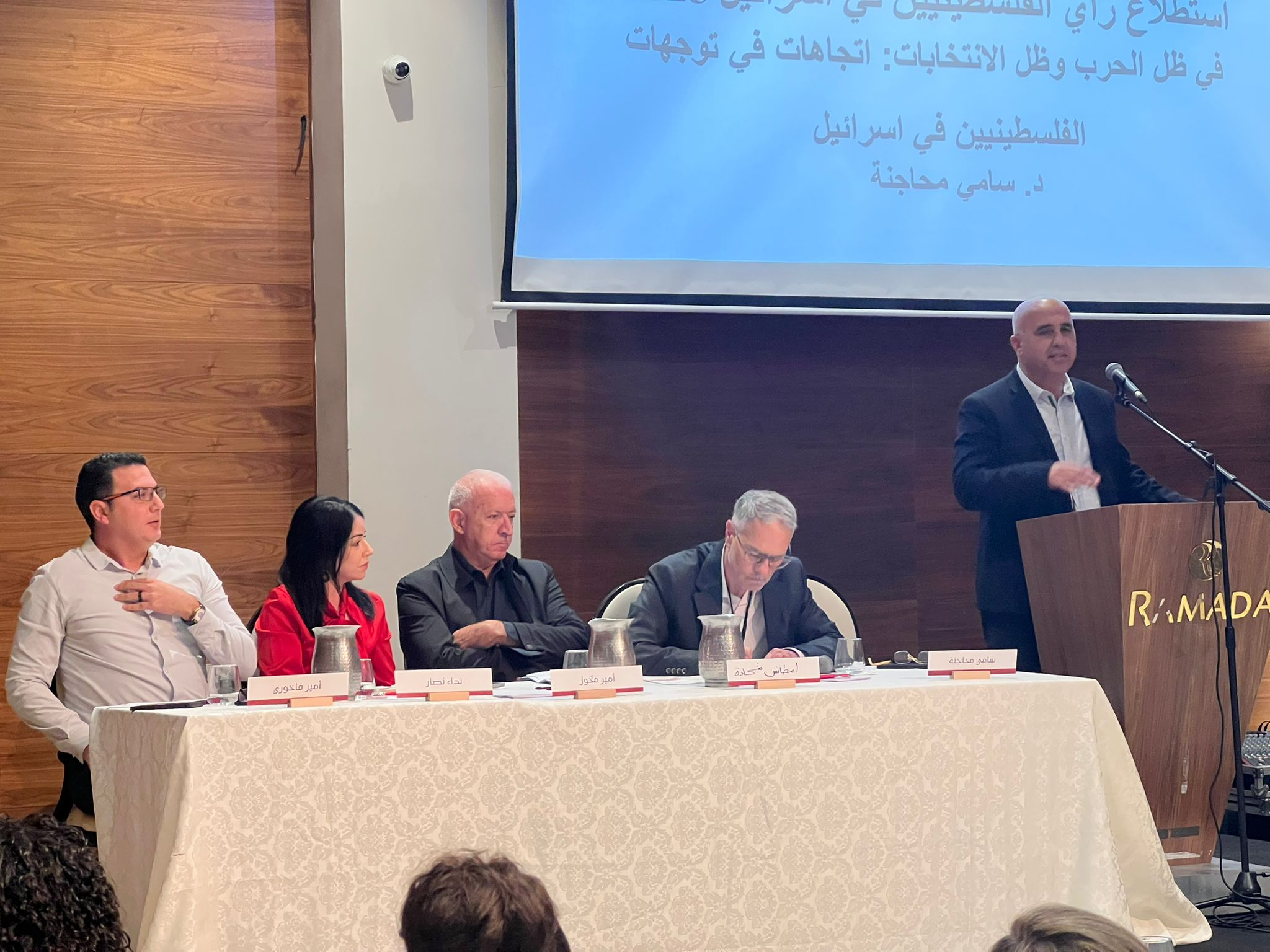 وعرض د. سامي محاجنة نتائج استطلاع رأي "في ظل الحرب وظل الانتخابات: اتجاهات في توجهات الفلسطينيين في إسرائيل"، وتناول الاستطلاع ثلاثة أبعاد، وهم: مواقف الفلسطينيين في إسرائيل من الحرب على غزة، ووجهة نظر الفلسطينيين في إسرائيل بالنسبة لتأثير الحرب على غزة عليهم، والمستقبل السياسي للفلسطينيين في مناطق 67 من وجهة نظر الفلسطينيين في إسرائيل.