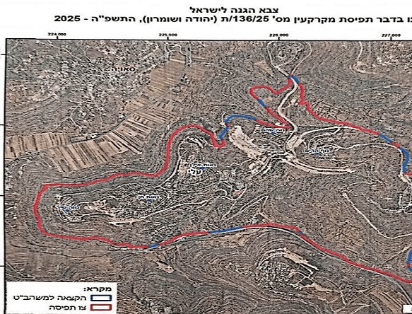 كشفت هيئة مقاومة الجدار والاستيطان، عن استيلاء سلطات الاحتلال الإسرائيلي على 70.147 دونما من خلال أمر وضع يد لأغراض عسكرية وأمنية، من أراضي قرى قريوت، واللبن الشرقية، والساوية، في محافظة نابلس، لصالح إقامة منطقة عازلة حول مستعمرة "عيلي".