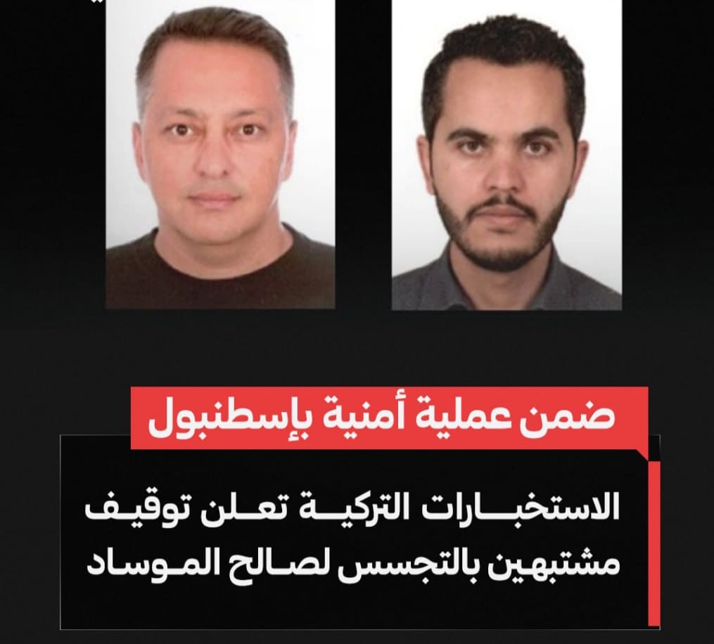 ألقت الاستخبارات التركية في إطار عملية أمنية أطلقت عليها اسم "مونيتوم"، القبض على شخصين، تبين أنهما يعملان لصالح جهاز المخابرات الإسرائيلي "الموساد".