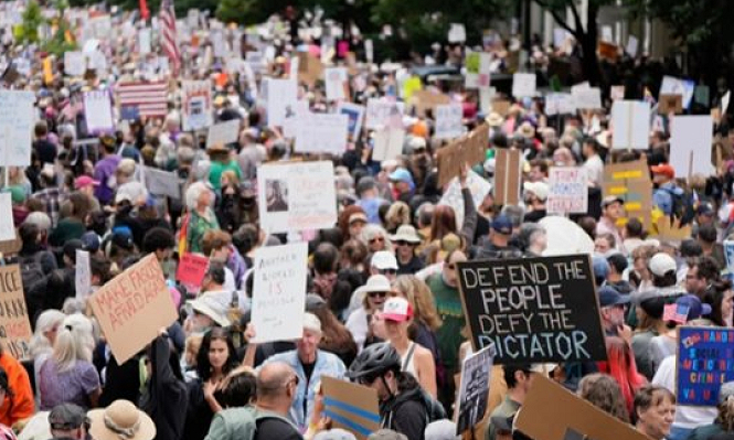 من المتوقع أن تتجمع حشود كبيرة في آلاف الأماكن في جميع أنحاء الولايات المتحدة، اليوم السبت، في احتجاجات ضد ما يصفه البعض بأنه ممارسات استبدادية متزايدة من الرئيس، دونالد ترامب.